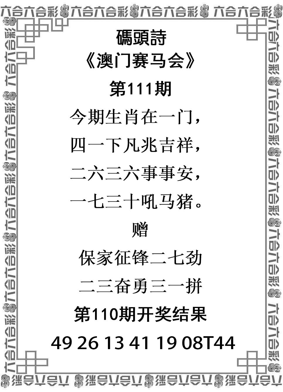 110期:澳门战神▲八肖【虎龙羊兔鼠鸡马猪】开:猪44准
